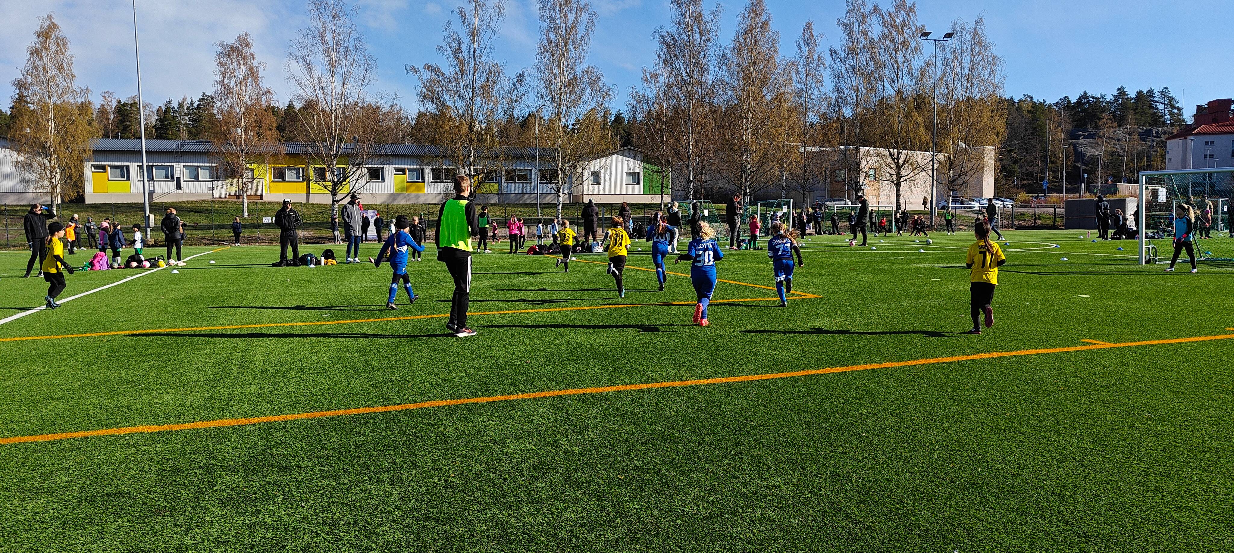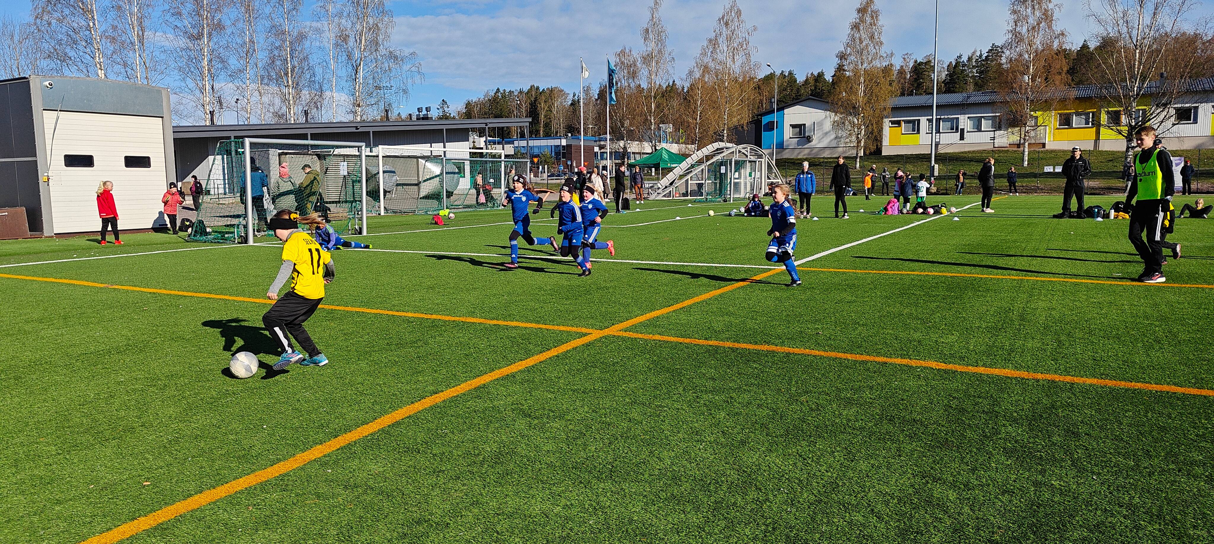 Kentällä vilisee espoolaisten ja lähikuntien jalkapalloseurojen pelipaitoja ja kuuluu iloisten lasten ääniä. Pelit pyörivät useammalla vierekkäisellä kentällä hyvällä fiiliksellä. Ollaan tietysti pelaamassa Espoon Liigaa.