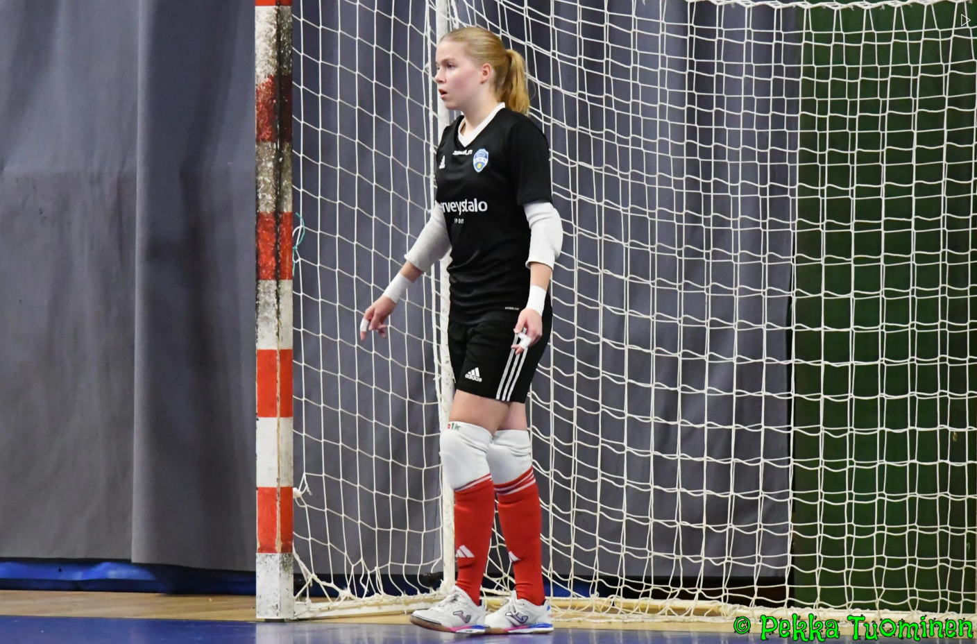 EBK pääsee vielä kertaalleen kaventamaan tulosta minuutti ennen peliajan päättymistä, kun Sneckin pitkä avaus löytää kolme maalille ryntäävää valkopaitaista, jotka yhteisvoimin toteuttavat klassisen futsalmaalin: Noora Alajärvi ohjaa pallon takatolpalle, jossa vihdoin oikea-aikaisesti juoksee Sanni Särö, joka onnistuu tuikkaamaan pallon vastustajan selän takaa maaliin. Loppukiriä koitettiin vielä reikäpaitapelaamisella, mutta se kostautui tälläkin kertaa Tahvanaisen laukoessa pallon käsistään suoraan verkkoon.